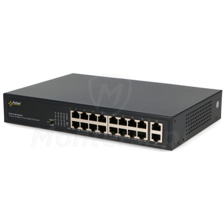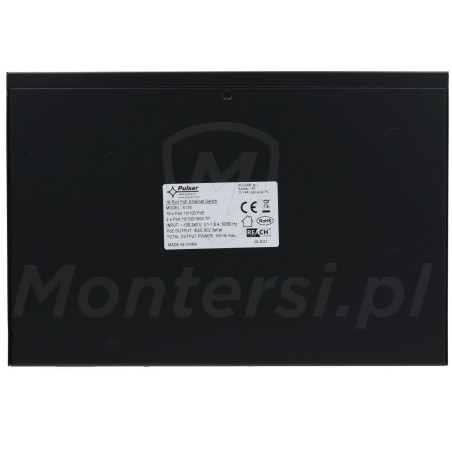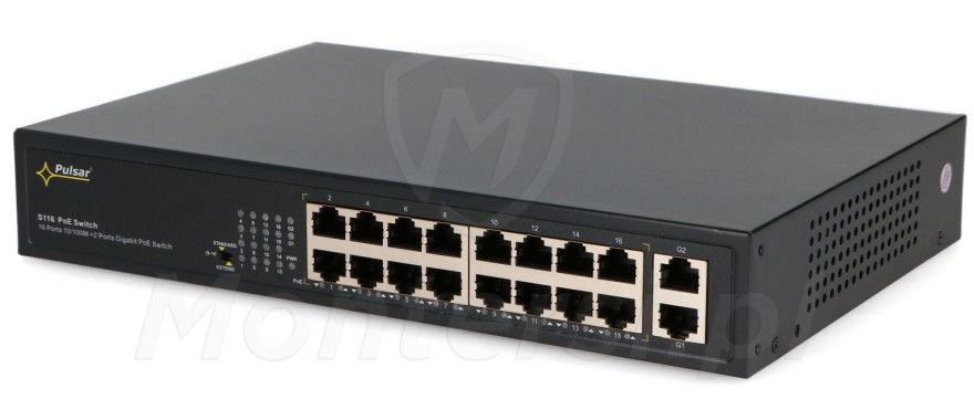 S116 - 18-portowy switch PoE, przeznaczony do pracy w systemie monitoringu IP. Niezawodny i prosty w obsłudze, umożliwia realizację zasilania i transmisji danych z maksymalnie 16 kamer PoE.