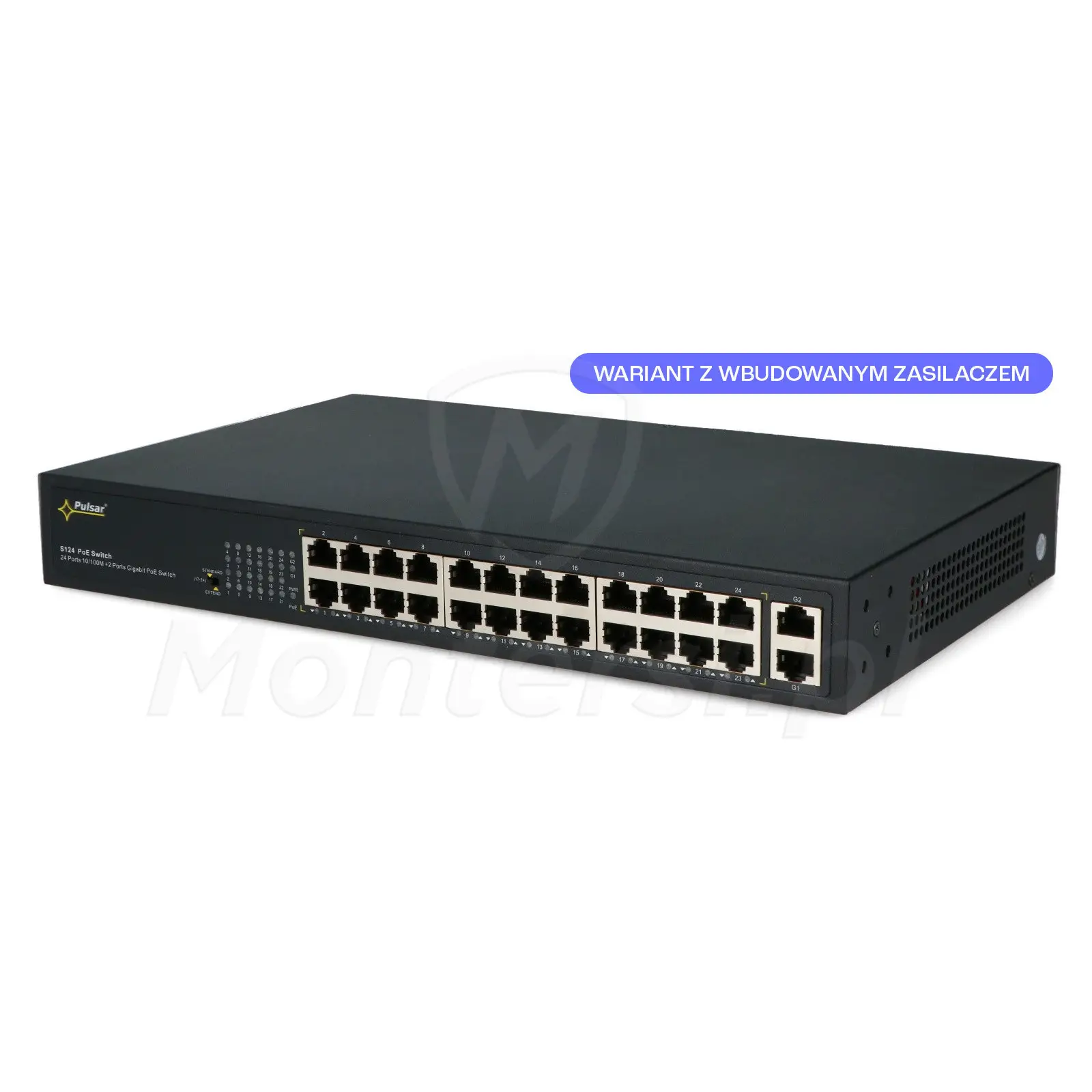 S124 - 26-portowy switch PoE, przeznaczony do pracy w systemie monitoringu IP. Niezawodny i prosty w obsłudze, umożliwia realizację zasilania i transmisji danych z maksymalnie 24 kamer PoE.
