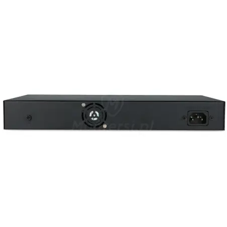 Switch wyposażony jest w wentylator umieszczony na tylnym panelu. Dzięki temu urządzenie pracując nawet pod większym obciążeniem nie będzie się przegrzewać. Takie chłodzenie wpływa również korzystnie na stabilność pracy switcha oraz umożliwia montaż urządzenia w miejscach, gdzie wymagane jest wymuszone chłodzenie.
