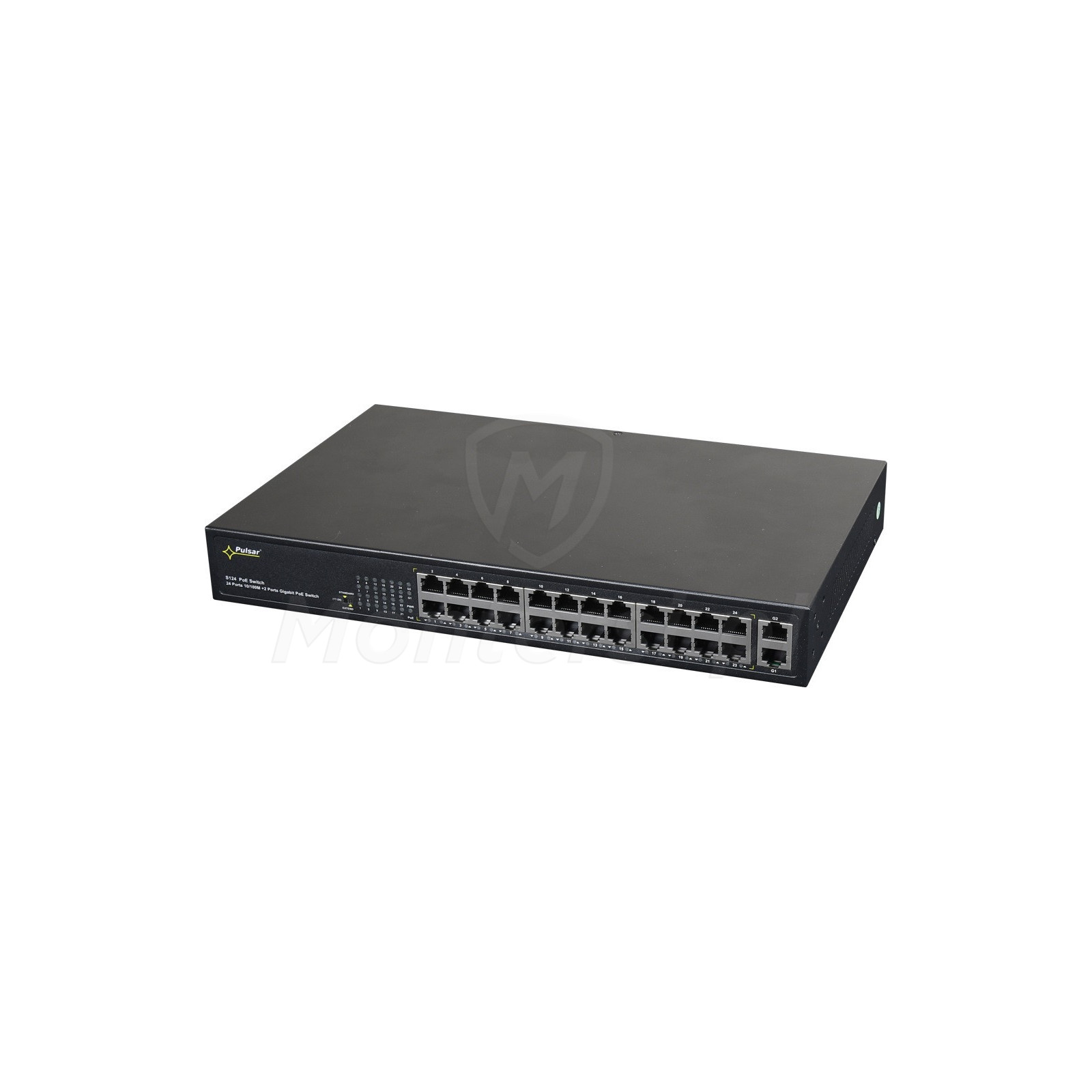 S124WP - 26-portowy switch PoE, przeznaczony do pracy w systemie monitoringu IP. Niezawodny i prosty w obsłudze, umożliwia realizację zasilania i transmisji danych z maksymalnie 16 kamer PoE.