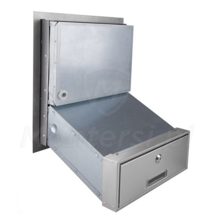 - Zamykane na kluczyk drzwiczki z okienkiem na panelu tylnym. Okienko umożliwia sprawdzenie, czy poczta znajduje się w skrzynce