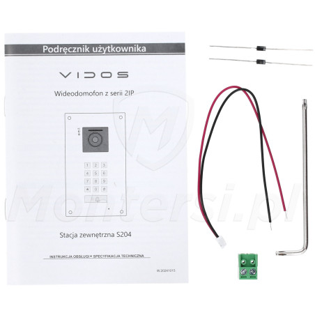 S204 - Zewnętrzny panel bramowy, przystosowany do pracy w dwużyłowym systemie wideodomofonu VIDOS 2IP. Umożliwia pracę w trybie jedno lub wielolokatorskim. Seria wideodomofonów VIDOS 2IP cechuje się wysoką jakością wykonania, niezawodnością i wysoką funkcjonalnością. Przez co sprawdza się ona świetnie w systemach wideodomofonów domów jednorodzinnych i firm, w których konieczne jest dodatkowe zabezpieczenie wejścia.