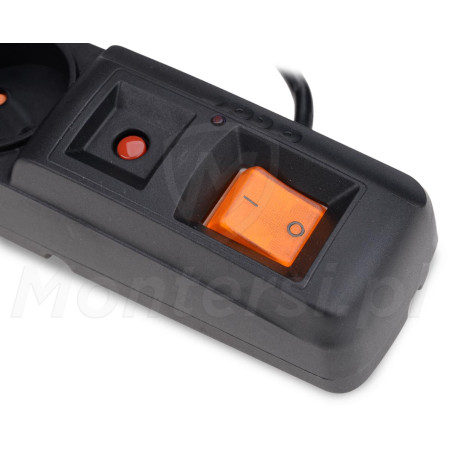 - Dwubiegunowy, podświetlany włącznik, umożliwiający szybkie załączanie urządzeń zasilanych przez listwę