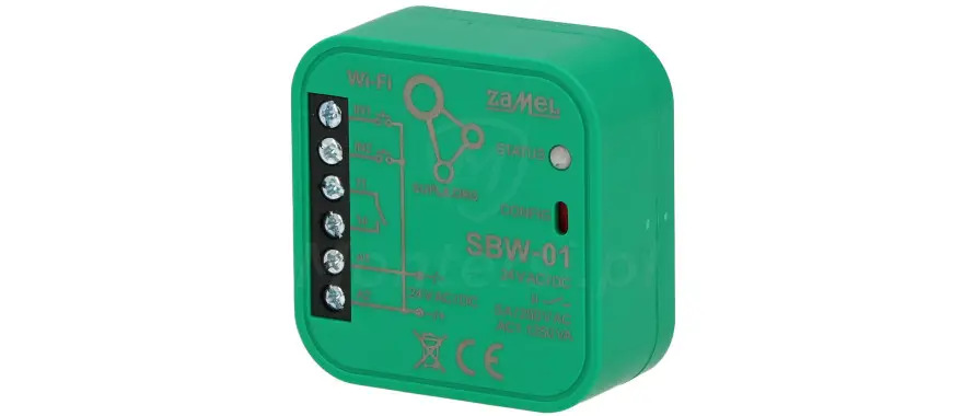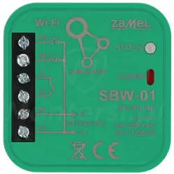SBW-01 posiada wbudowaną kartę Wi-Fi pracującą na częstotliwości 2.4 GHz. Dzięki temu możemy w łatwy sposób podłączyć sterownik do naszej istniejącej już sieci Wi-Fi. Daje to możliwość sterowania urządzeniem z każdego miejsca na świecie przy wykorzystaniu sieci Wi-Fi lub danych mobilnych. Wszelkie ustawienia oraz konfiguracja urządzenia odbywa się bezprzewodowo po zainstalowaniu dedykowanej aplikacji.