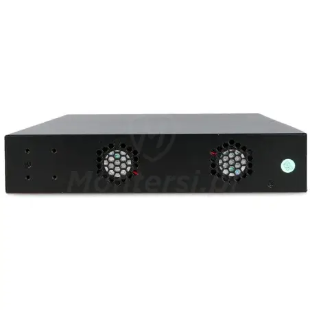 - Wbudowane 24 porty PoE 802.3af / 802.3at fast ethernet, do podłączenia kamer