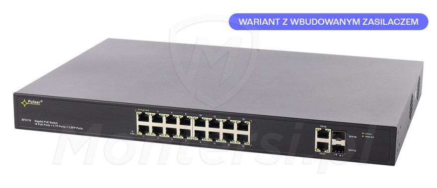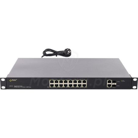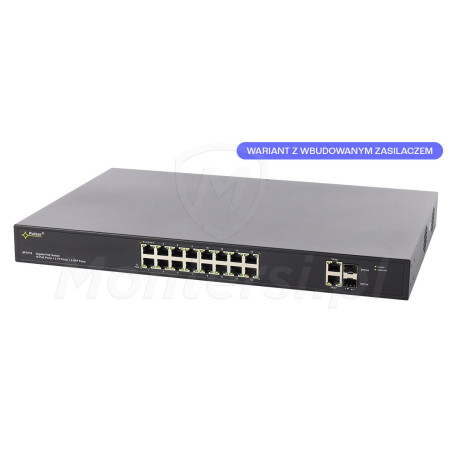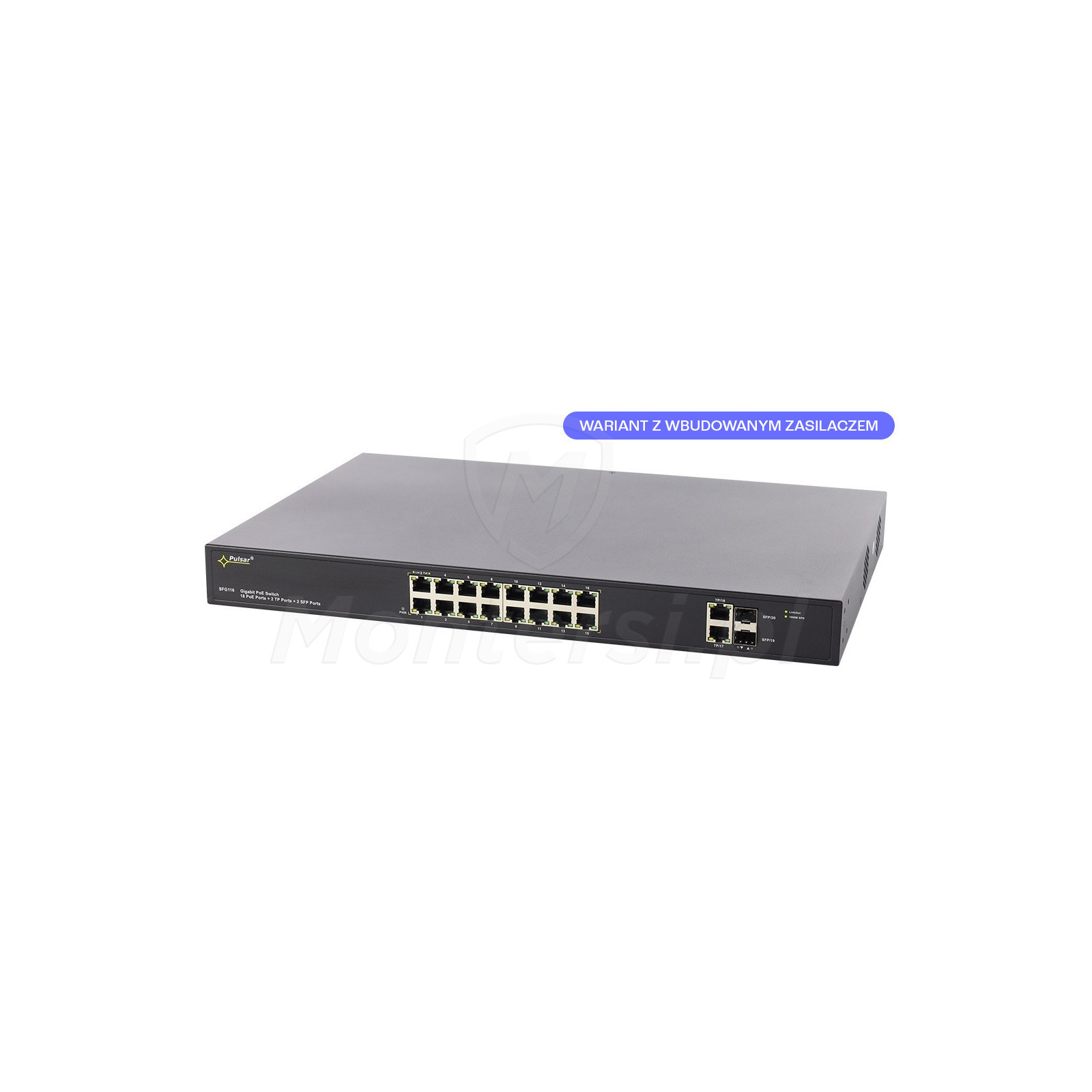SFG116 - 20-portowy switch PoE dedykowany do pracy w systemie monitoringu IP. Niezawodny i prosty w obsłudze, umożliwia realizację zasilania i transmisji danych z maksymalnie 16 kamer PoE.