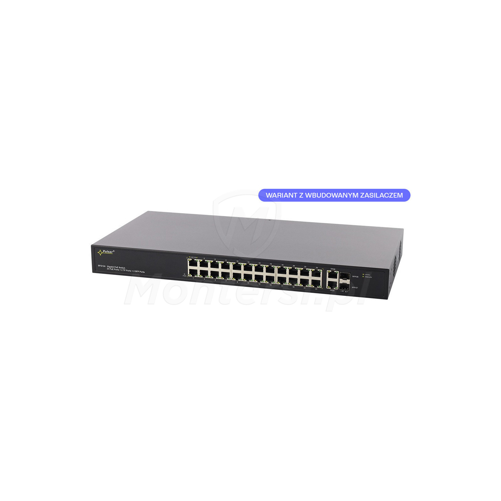 - Wbudowane 24 portów PoE 802.3af / 802.3at gigabit ethernet, do podłączenia kamer
