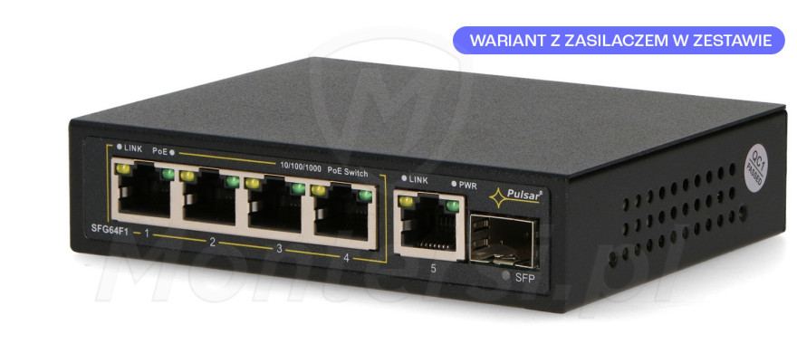 Switch Pulsar SFG64F1 sprawdza się świetnie w małych i średnich systemach monitoringu IP. Można go z powodzeniem stosować w miejscach takich jak np. domy, mieszkania, sklepy lub pomieszczenia biurowe. Ze względu na wysoką przepustowość na portach PoE / UPLINK, może skutecznie współpracować z kamerami wysokiej rozdzielczości oraz innymi switchami oferującymi łączność światłowodową.