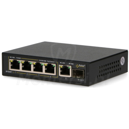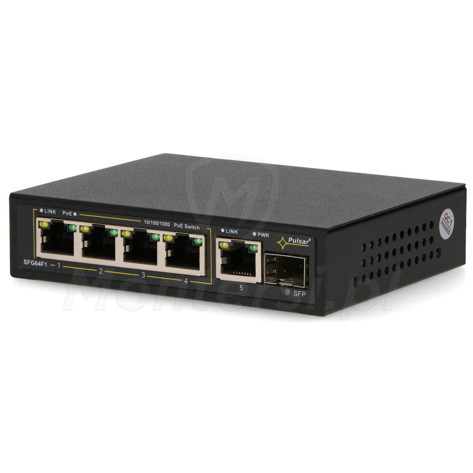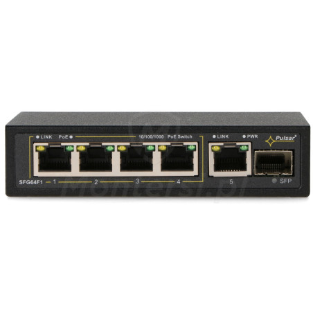 Switch Pulsar SFG64F1WP sprawdza się świetnie w małych i średnich systemach monitoringu IP. Można go z powodzeniem stosować w miejscach takich jak np. domy, mieszkania, sklepy lub pomieszczenia biurowe. Ze względu na wysoką przepustowość na portach PoE / UPLINK, może skutecznie współpracować z kamerami wysokiej rozdzielczości oraz innymi switchami oferującymi łączność światłowodową.