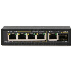 SFG64F1WP - 6-portowy switch PoE dedykowany do pracy w systemie monitoringu IP. Niezawodny i prosty w obsłudze, umożliwia realizację zasilania i transmisji danych z maksymalnie 4 kamer PoE.