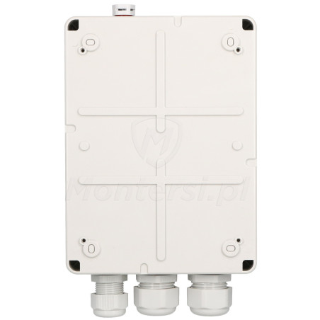 - Umożliwia montaż kamer IP w trudno dostępnych miejscach, gdzie instalacja standardowych zasilaczy jest niepraktyczna. Pozwala to na bardziej elastyczne rozmieszczenie elementów systemu monitoringu.