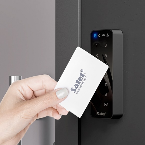 W klawiaturze SO-MF5-B zastosowano także czytnik kart Mifare. Daje nam to możliwość aktywacji lub deaktywacji systemu alarmowego bez konieczności wpisywania kodu. Jest to wygodny i zdecydowanie szybszy sposób na dostęp do systemu.