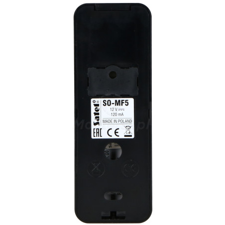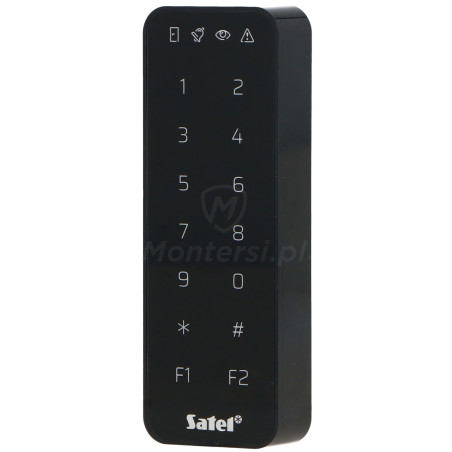 SO-MF5-B - Klawiatura z czytnikiem Mifare z możliwością pracy autonomicznej lub w połączeniu z systemem alarmowym Satel Integra. Charakteryzuje się eleganckim wyglądem oraz dużą funkcjonalnością.