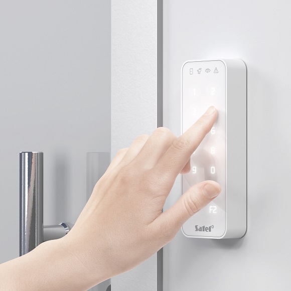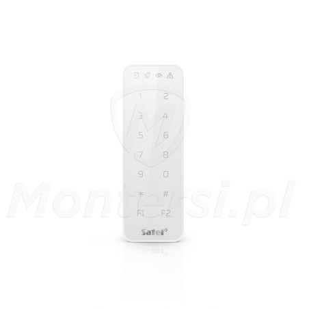 SO-MF5-W został wyposażony w podświetlaną klawiaturę (14 znaków). Z jej poziomu możliwe jest sterowanie systemem alarmowym - wystarczy wprowadzić odpowiedni kod PIN. Zastosowanie białego podświetlenia klawiszy sprawia, ze klawiaturę można obsługiwać po zmroku. Przy użyciu klawiatury możemy: