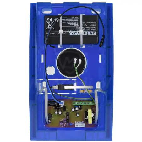 SP-4006 BL - Zewnętrzny sygnalizator optyczno - akustyczny, przystosowany do współpracy z systemami alarmowymi. Wyposażony w zespół jasno świecących diod LED, realizujących sygnalizację optyczną i przetwornik piezoelektryczny, odpowiedzialny za generowanie modulowanego sygnału dźwiękowego o dużej głośności. Cechą charakterystyczną urządzenia jest możliwość pracy z akumulatorem, stanowiącym alternatywne źródło zasilania. Wewnątrz obudowy umieszczony jest niewielki akumulator ołowiowo - kwasowy 1.3 Ah / 6 V.