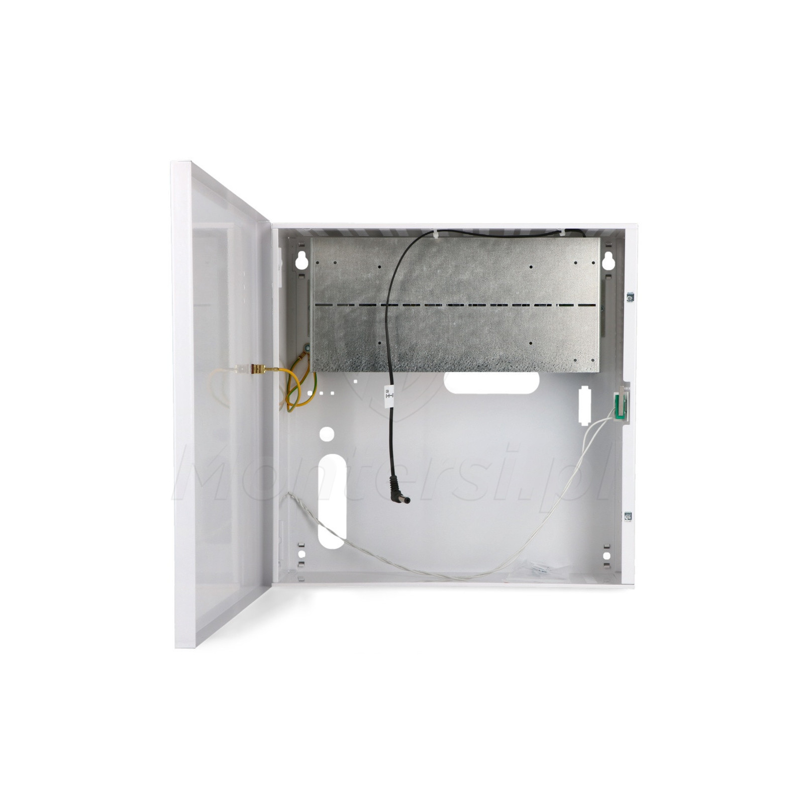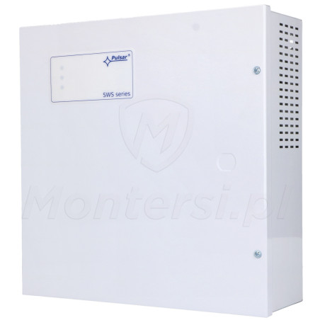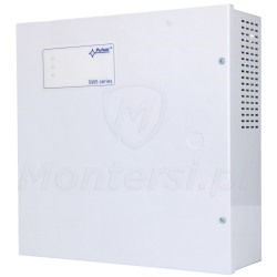 SWS-150 - System zasilania switchy PoE przeznaczony do zasilania switchy PoE napięciem 52 V DC. System wyposażony w zasilacz impulsowy o sprawności 88% zamkniętym w metalowej obudowie. Zasilacz wyposażony jest w wtyk DC 5.5/2.1 mm. Na wyposażeniu obudowy znajduje się specjalna blacha montażowa pozwalająca na przymocowanie switcha PoE oraz włącznik sabotażowy sygnalizujący otwarcie drzwiczek obudowy. Do najważniejszych cech zasilacza można zaliczyć: