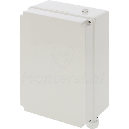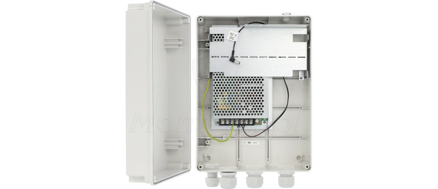 Zasilacz umieszczono w plastikowej obudowie, przystosowanej do montażu natynkowego. Zapewnia ona dodatkową ochronę przed ingerencją osób trzecich i umożliwia montaż zasilacza na ścianie, w dogodnym dla użytkownika miejscu. Do cech charakterystycznych obudowy można zaliczyć: