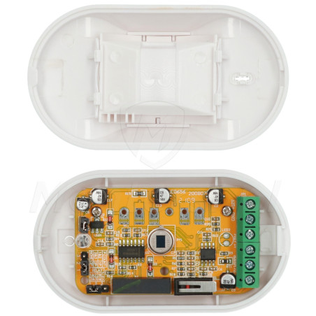 Możliwość regulacji zasięgu pozwala na precyzyjne określenie zasięgu wykrywania ruchu. Dodatkowo małe wymiary detektora umożliwiają zamocowanie czujki na ścianie lub suficie.