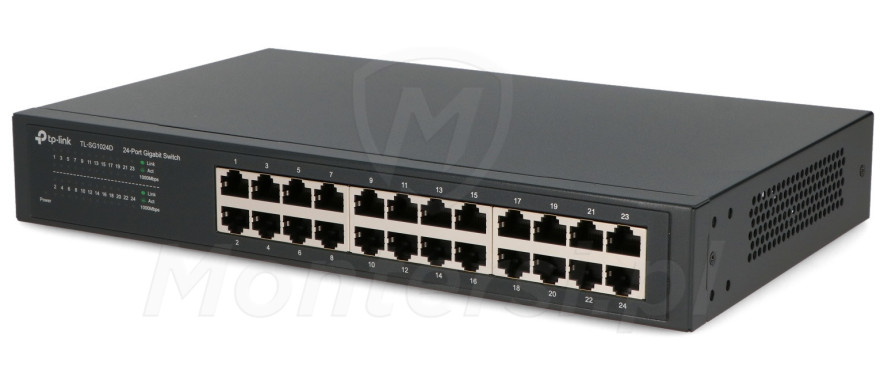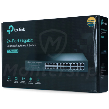 24-portowy switch gigabit (10 / 100 / 1000 Mb/s), przeznaczony do stosowania w sieciach komputerowych i systemach monitoringu IP - Świetnie sprawdza się w roli dystrybutora sygnału z kamer megapikselowych. Dodatkowo cechuje się on prostą obsługą i instalacją (Plug & Play / Auto MDI/MDIX), wolną od błędów transmisją danych (Store-and-Forward) i energooszczędnością (Green TP-Link).