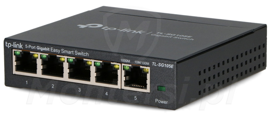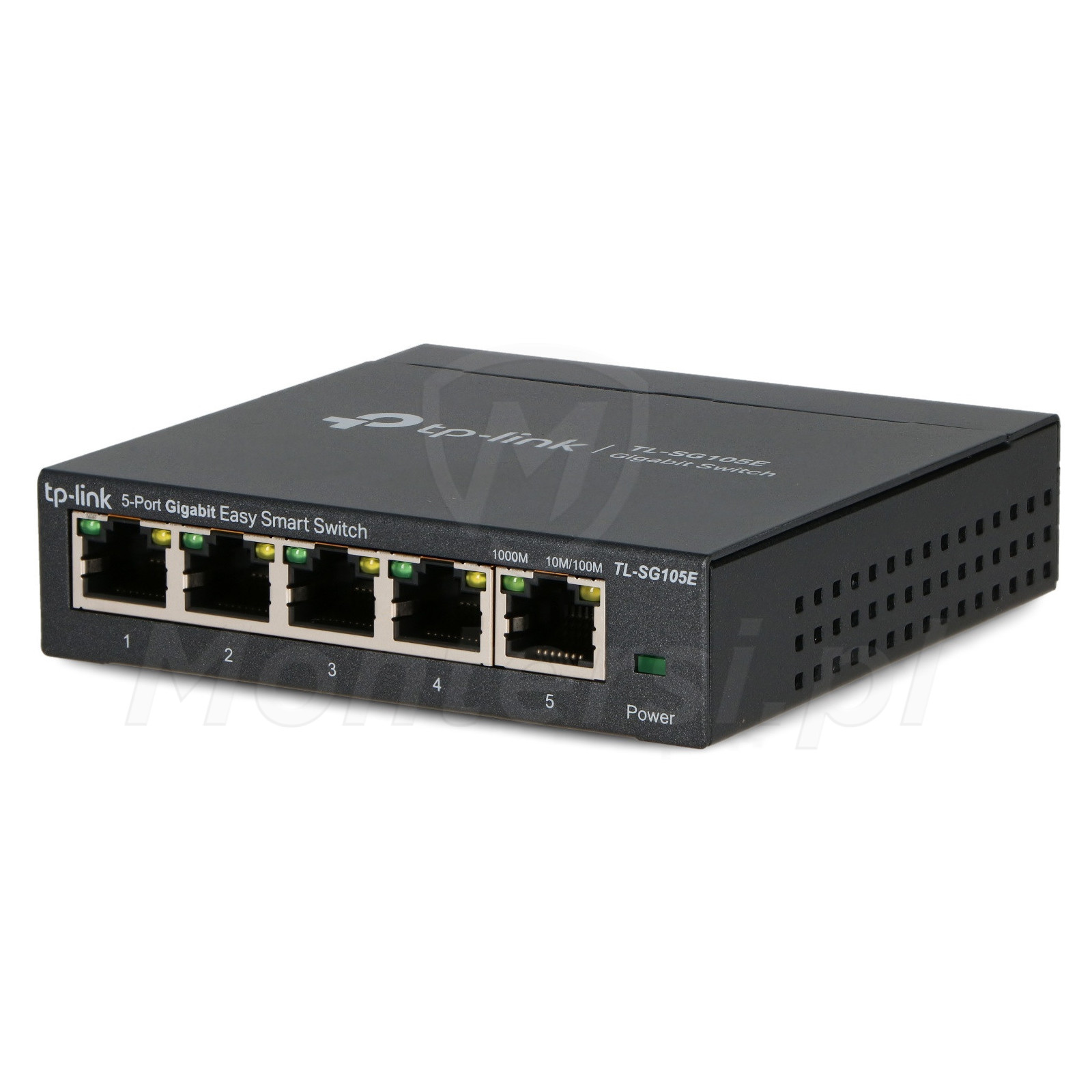 TL-SG105E - 5 Portowy gigabitowy switch TP-Link. Przełącznik wyposażony w osiem portów RJ45. Każdy port posiada przepustowość sięgającą 1000 Mb/s. Dzięki zastosowaniu protokołów QoS, TL-SG105E świetnie sprawdzi się jako switch zarówno w małych firmach, jak i w prywatnych domach.