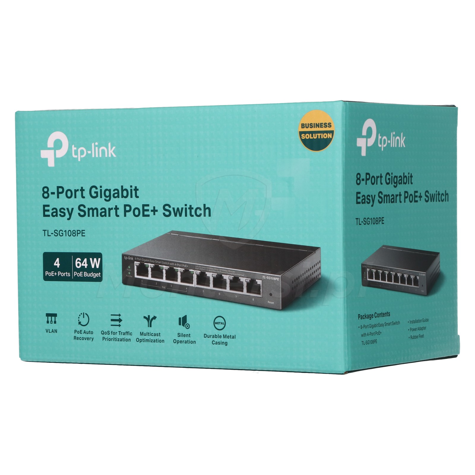 TL-SG108E - 8 Portowy gigabitowy switch zarządzalny TP-Link. Przełącznik wyposażony w osiem portów RJ45. Każdy port posiada przepustowość sięgającą 1000 Mb/s. Dzięki zastosowaniu protokołów QoS, TL-SG108E świetnie sprawdzi się jako switch zarówno w małych i średnich firmach, jak i w prywatnych domach.