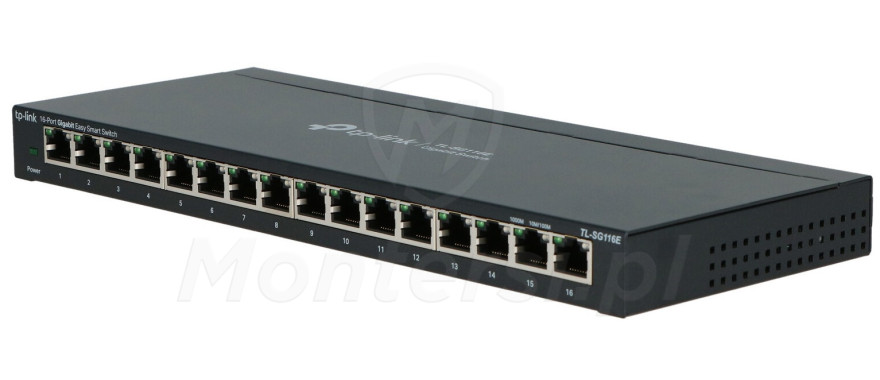 TL-SG116E to przełącznik wyposażony w 16 portów RJ45 o przepustowości 10/100/1000 Mb/s. Bardzo dobre rozwiązanie, dzięki któremu można zwiększyć prędkość połączenia między komputerami w sieci lokalnej. Gigabitowy switch jest niezbędnym elementem sieci komputerowej, w której chcemy uzyskać prędkość połączenia wyższą niż standardowe 100 Mb/s. Rozwiązanie gigabitowe pozwala w szybki prosty sposób przesyłać duże pliki między komputerami. Taka prędkość w sieciach lokalnych pozwala na niemalże natychmiastową wymianę dużych plików graficznych, całych projektów lub nawet ogromnych plików multimedialnych.