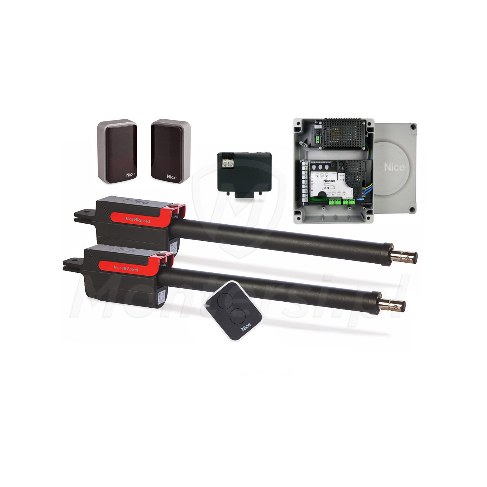 TTN6024HSBDKCE ON2E - Zestaw siłowników, dedykowany do obsługi bram skrzydłowych o długości do 6 m i wadze do 450 kg. Niezawodny, szybki w działaniu (HI-SPEED) oraz prosty w montażu i obsłudze, sprawdza się świetnie w instalacjach domowych. W skład zestawu wchodzą: