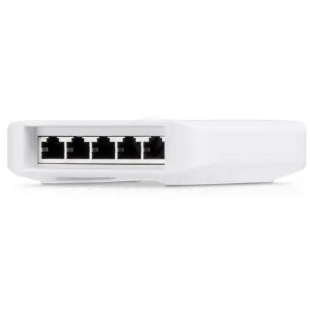 Switch USW-FLEX wyposażony jest w 5 portów RJ45 z możliwością transmisji z prędkością osiągającą nawet 1000 Mb/s. Jeden port oznaczony jest jako PoE IN i jest on odpowiedzialny za zasilanie urządzenia. Pozostałe 4 porty PoE OUT pozwalają to na podłączenie szerokiej gamy urządzeń, które mogą realizować różne funkcje. Do switcha można podłączyć zarówno urządzenia sieciowe jak i urządzenia systemu monitoringu takie jak kamery IP lub rejestratory.