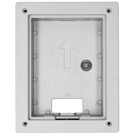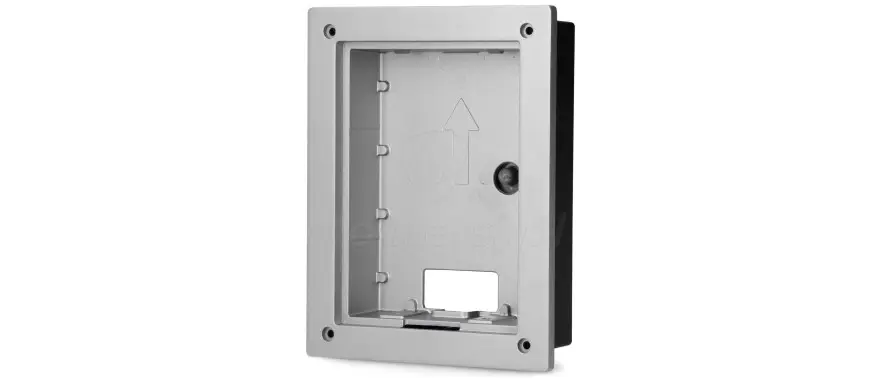 VTM114 - Podtynkowa obudowa montażowa do paneli bramowych Dahua serii VTO220F-P. Przy jej pomocy możliwy jest estetyczny montaż stacji i dodatkowe zabezpieczenie dostępu do jej wnętrza. Do cech charakterystycznych obudowy VTM114 można zaliczyć: