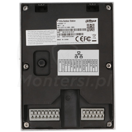 - Wbudowany interfejs sieciowy fast ethernet 10 / 100 Mb/s (Base-T). Podłączenie panelu do systemu wideodomofonu jest realizowane przy pomocy klasycznego kabla UTP