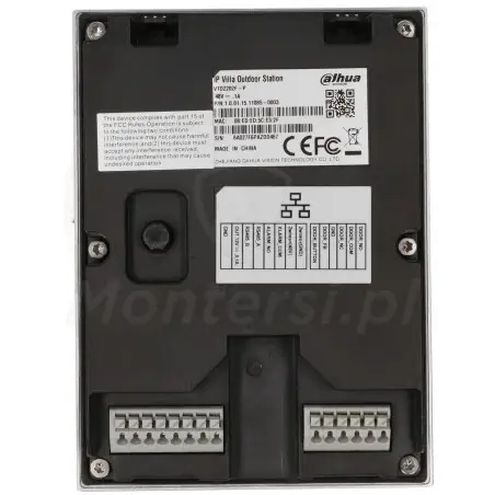 VTO2202F-P-S2 jest cyfrowym panelem bramowym, dedykowanym do pracy w systemie wideodomofonu IP Dahua. Do cech charakterystycznych modelu można zaliczyć: