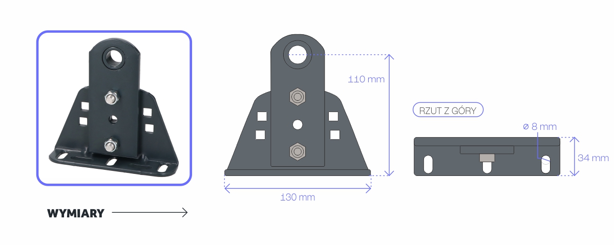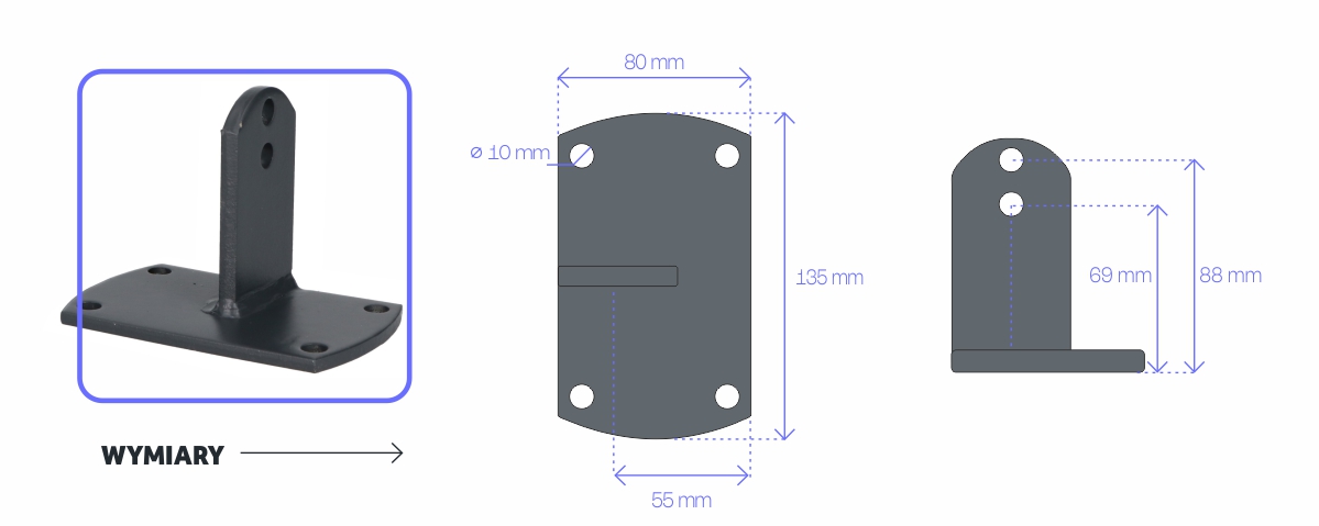 - Wspornik montażowy do słupków stalowych o następujących wymiarach: