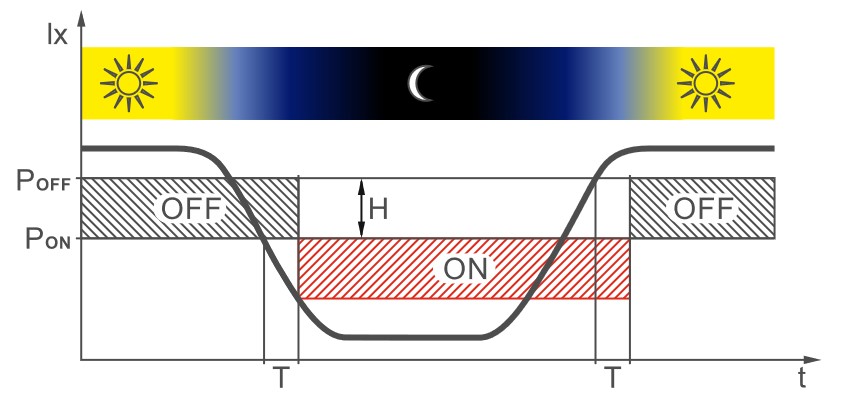 Czujka pracuje w zakresie od 2 lx do 250 lx, a instalator może podczas konfiguracji wybrać jeden z 16 progów detekcji. Układ pomiarowy wyposażony jest w tzw. histerezę, dzięki czemu krótkotrwałe zmiany natężenia światła nie wpływają na jej pracę (przełączanie jej progu). Ta histereza właśnie oraz wprowadzone opóźnienia powodują, że np. światło reflektorów samochodowych w nocy nie powoduje zaburzenia pracy czujki (jeżeli trwa to tylko chwilę).