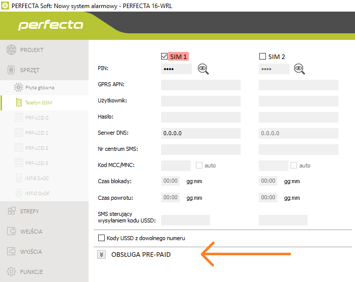 Każda Perfecta ma moduł GSM i każda Perfecta obsługuje automatyczne sprawdzanie środków na koncie. Program PERFECTA Soft -> Zakładka: „Sprzęt” -> „Telefon GSM”.