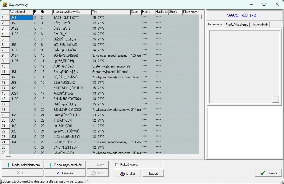 Nie wygląda to dobrze. Gorsze jest jednak to, że teraz żadne hasła nie są przyjmowane przez centralę. Dodatkowo pamięć zdarzeń również może okazać się niemiłą niespodzianką.