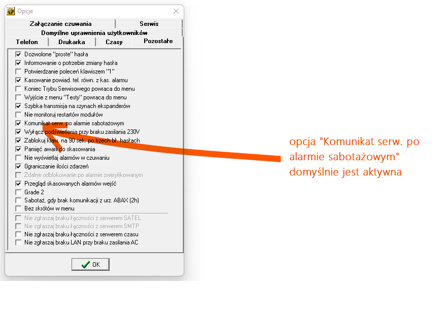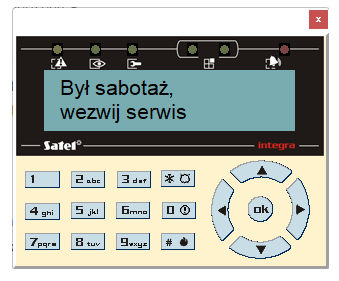 Istnieje możliwość całkowitego wyłączenia opisywanego komunikatu. Po skasowaniu alarmu sabotażowego, taki komunikat [Był sabotaż…] już się nie pokazuje (a więc nie ma potrzeby jego kasowania).