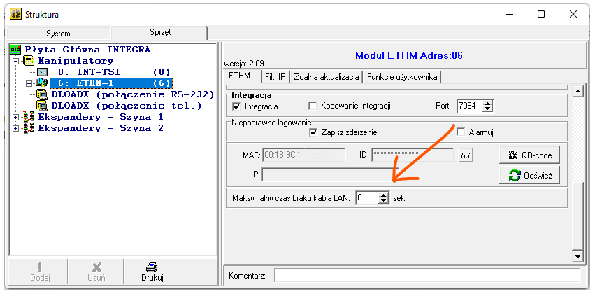 Tutaj należy pamiętać, że ustawienie wartości 0 (domyślnie) nie powoduje wyłączenia zgłaszania braku obecności sieci LAN. Wartość 0 oznacza, że opóźnienia nie będzie (brak LAN zgłaszany jest natychmiastowo). Nie ma też możliwości takiego ustawienia, które nie będzie kontrolowało obecności sieci LAN. Ta kontrola istnieje zawsze i nie można jej wyłączyć.