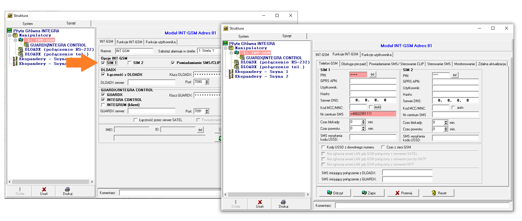Krok 1: Wstępna konfiguracja karty SIM w module INT-GSM