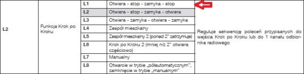 Zgodnie z instrukcją (Rys. 2) wejście sterujące Sbs pracuje domyślnie jako „Otwiera – stop – zamyka – otwiera” (kolor szary). Aby sterowanie odbywało się zgodnie z założeniami, należy przestawić jego sposób działania na tryb „Otwiera – stop – zamyka – stop” (strzałka).