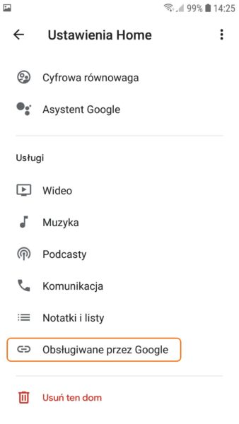 Rys. 2 Lista urządzeń w aplikacji Google Home
