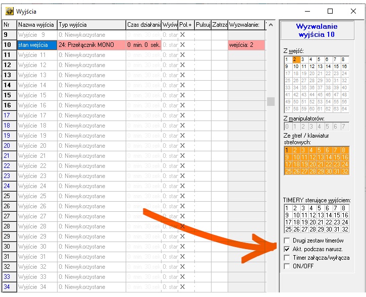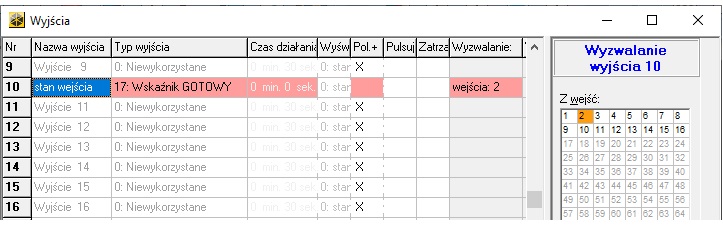 Tak skonfigurowane wyjście będzie działać w stosunku 1 do 1 z wejściem centrali.