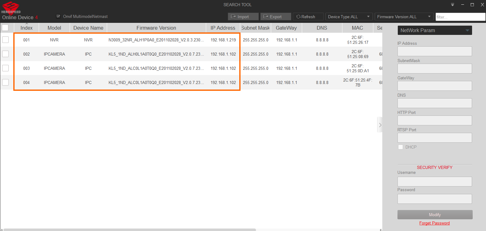 Rejestratory sieciowe mają domyślnie włączoną opcję automatycznego uzyskiwania adresu IP z serwera DHCP, więc konieczne będzie zlokalizowanie ich w sieci. Pomoże przy tym aplikacja, która pozwoli na odnalezienie wszystkich urządzeń tej serii.
