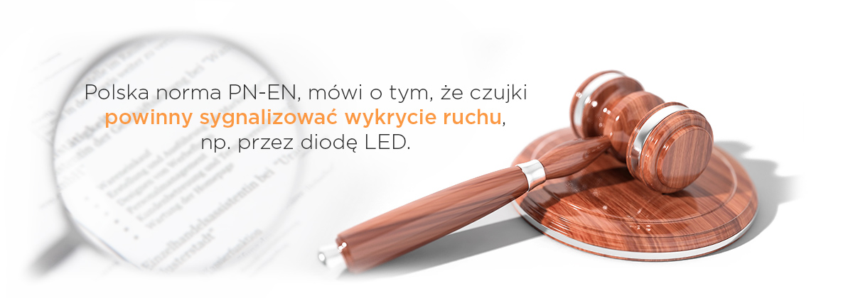W Polskiej Normie PN-EN 50131-2-2 (wrzesień 2009), „Część 2-2: Czujki sygnalizacji włamania, Pasywne czujki podczerwieni” istnieje zapis (pkt. 4.2.2) – „Sygnalizacja stanu wykrycia”. Uogólniając, mówi on o tym, że czujki powinny być wyposażone we wskaźnik, który zadziała w przypadku wykrycia ruchu. Tym wskaźnikiem jest np. dioda LED.