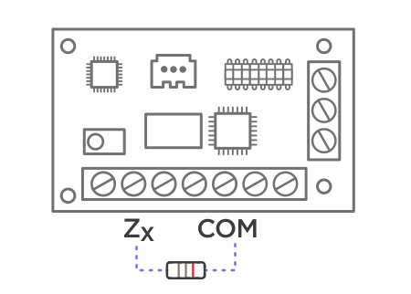 - Jeżeli wartości rezystorów nie były modyfikowane, to można podłączyć rezystor pomiędzy wejście centrali Zx i COM, a efekt powinien być następujący:
