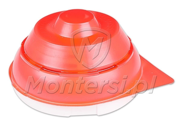 Pierwszą pozytywną rzeczą, która rzuca się w oczy zaraz po otwarciu jest czerwony ochronny kosz chroniący czujkę przed kurzem i pyłem. Dzięki temu czujka TSD-1 może być montowana w pomieszczeniach, które jeszcze nie są wykończone i nie musimy martwić się o to, że będą wymagać niezwłocznego czyszczenia. Kosz ochronny zdejmuje się w bardzo prosty sposób – pociągając za wystający język kosza.