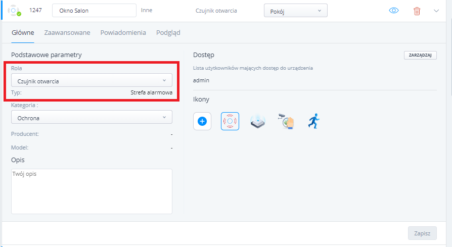 Centrala nie traktuje tych urządzeń jako stricte czujki otwarcia, przez co pojawiają się następujące ograniczenia: