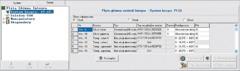 Konfiguracja czujki temperatury