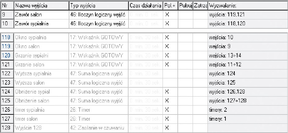 Konfiguracja wyjść