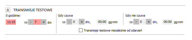 Tą opcję należy skonsultować z klientem. Często klienci chcą, aby SMS’y były do nich wysyłane codziennie, ale z czasem proszą instalatorów, aby ten okres wydłużyć do kilku dni. Poniżej ustawienie, które sprawi, że centrala będzie wysyłała SMS do klienta co tydzień o godz. 11:15.