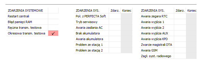 Na chwilę wrócimy do kroku nr 1. Wybieraliśmy tam format transmisji: CID – wybrane kody. To oznacza, że Perfecta będzie monitorowała tylko te zdarzenia, które wcześniej wybierze instalator. Musimy więc sami wybrać zdarzenie, które ma być monitorowane do stacji monitorującej, czyli w naszym przypadku – do przysłowiowego Kowalskiego.